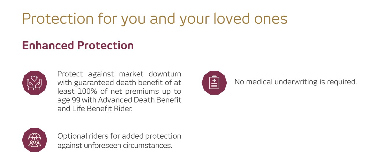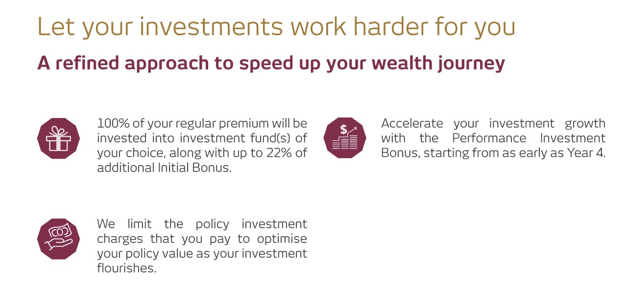 It is an ideal wealth-building solution with no premium shortfall charge after policy year 3. This is a whole life, regular premium investment-linked plan that provides insurance coverage and investment opportunities.